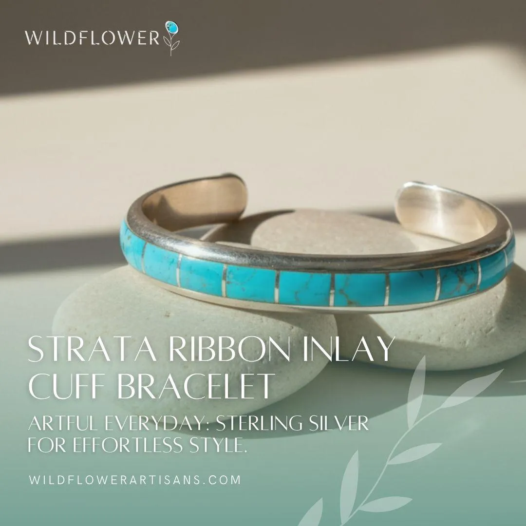 Strata Ribbon - Turquoise Channel-Inlay Cuff Bracelet, Handmade USA